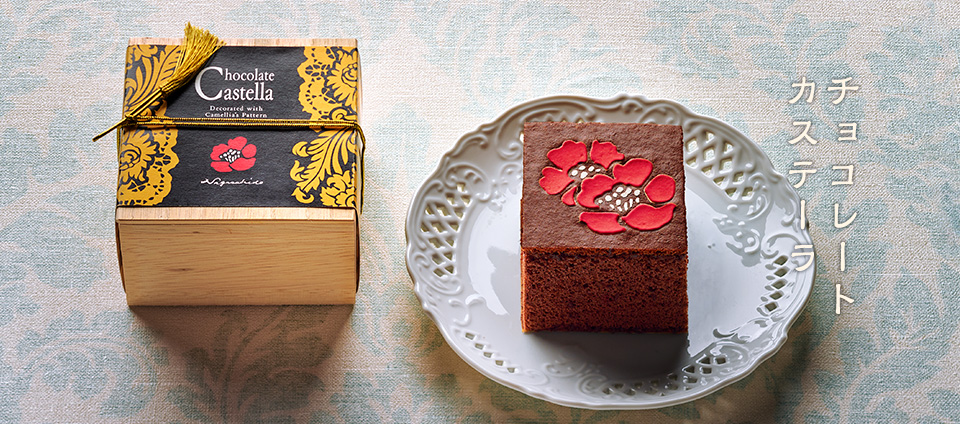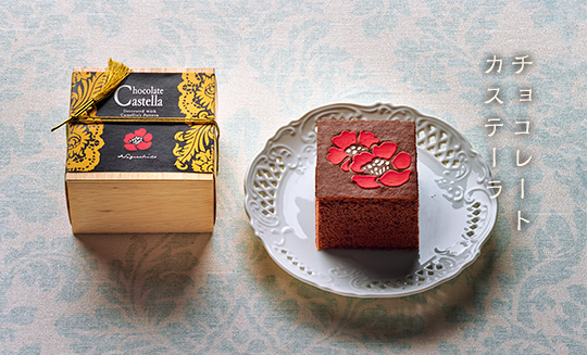 カカオマスの豊かな香りと濃厚な味わいのチョコレートカステラに、 バレンタイン限定で「椿」の模様を刷込みました。